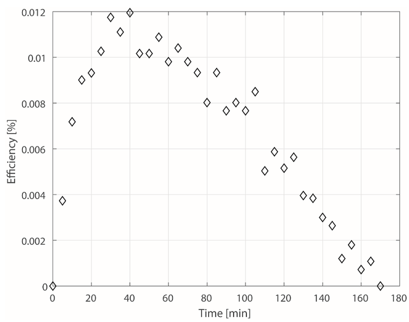 In this study, drying kinetics and thermodynamic analysis of tomato were conducted in a tunnel dryer. Drying experiments were carried-out at three temperatures (100, 115, and 130 °C) and at an air velocity of 1.45 m/s. From the drying curves, only a falling rate period was observed. Under these conditions, a characteristic drying curve was determined. It is observed that at 40 minutes of the drying process, the outlet gas enthalpy achieved a maximum value that is very close to the inlet value and remained constant until the end of the process. Entropy exhibited similar behaviour to enthalpy. The maximum value of the exergy efficiency curve corresponds to the maximum value observed within the drying rate curves. This maximum value represents the stage when the available energy is efficiently used in moisture removal. As the drying rate decreases the available energy is started to be less employed.