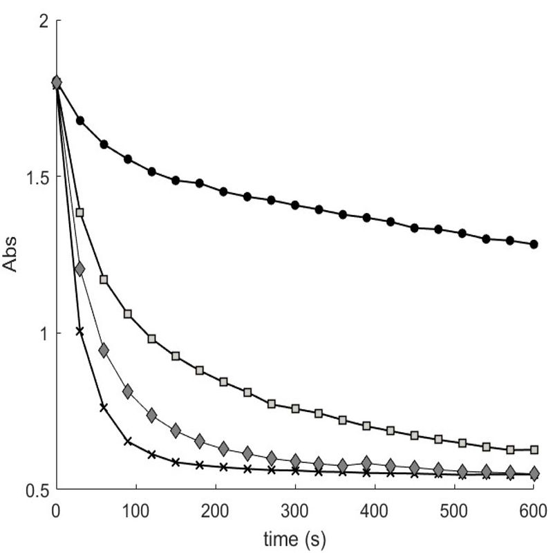 In this study, an antioxidant-rich extract was obtained by leaching Moringa oleifera leaves. The activity of the extract against the 2,2-diphenyl-1-picrylhydrazyl (DPPH) free radical was measured by determining a second-order rate constant (k2). The reaction between the mixture of antioxidants in the extract and the DPPH was monitored by measuring the absorbance at 517 nm in 30-second intervals for a period of 600 s. The absorbance exhibited a rapid decay within the first 100 s, followed by a slower decay. The absorbance data were fitted to a bi-exponential model. The curve fitting showed a linear relationship between the initial concentration of antioxidants and the reaction rate with the coefficient of determination values greater than 0.9979. The k2 value was 0.0870 ± 0.0007 mg/mL.